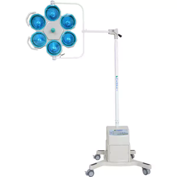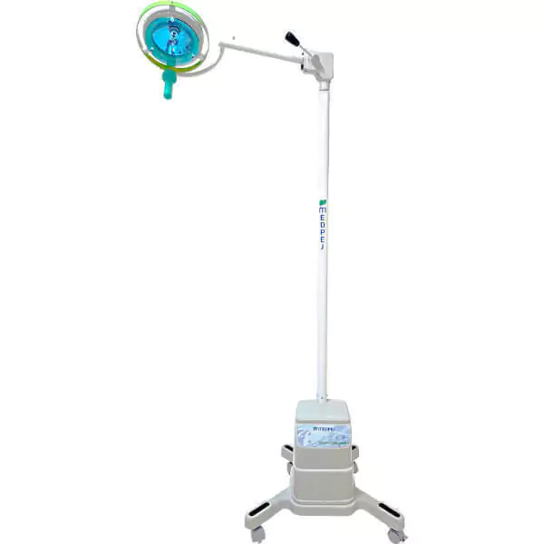 Módulo de Emergência Integrado: Este foco cirúrgico possui um módulo de emergência integrado ao equipamento ou gabinete principal. Esse módulo é alimentado por uma bateria de chumbo-ácido estacionária de 12V e oferece uma autonomia de aproximadamente 1 a 2 horas e 30 minutos, dependendo do modelo do equipamento e da intensidade da luz.