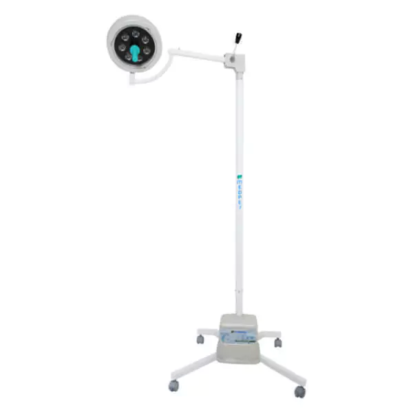 Mobilidade: Equipado com rodízios resistentes, este foco cirúrgico oferece mobilidade dentro de ambientes cirúrgicos, mesmo em espaços pequenos.
