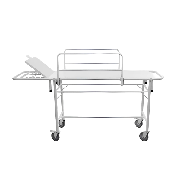 A maca é equipada com uma cabeceira regulável, grades laterais e suporte para soro com dois ganchos, tornando-a adequada para uma variedade de procedimentos médicos. Os rodízios de 4 polegadas garantem fácil mobilidade, com dois deles possuindo freios para maior segurança durante o uso.